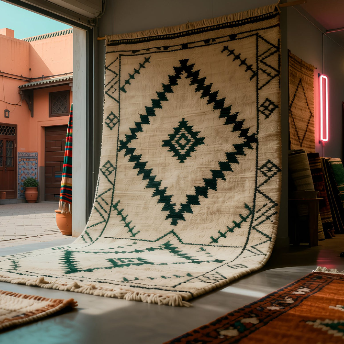 Fabriqué avec de la laine de première qualité et des colorants naturels, ce tapis Mediouna arbore un design minimaliste qui ne fait qu'accentuer sa valeur. Malgré sa simplicité, il illustre un savoir-faire et une qualité exceptionnels. Témoin de la beauté de l'élégance discrète, ce tapis constitue un ajout précieux à tout espace.